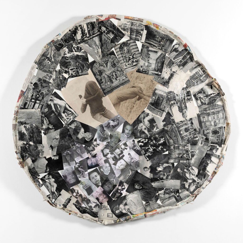 Das seit den frühen 1980er-Jahren entstandene Werk der österreichischen Künstlerin Michaela Moscouw gilt als von zeitlichen Strömungen unbeeinflusst und radikal eigenständig. Auch im Blick auf die im FOTOHOF>ARCHIV vorhandenen Teile ihres Schaffens wird eine überraschende und aus konservatorischer Sicht eigenartige Gemengelage deutlich. Die während eines Arbeitsaufenthalts in Salzburg entstandene Werkgruppe »Aus der präparierten Dunkelkammer« (2016) wurde zunächst in die Sammlung des FOTOHOF>ARCHIV eingegliedert, später jedoch von der Künstlerin zur Weiterverarbeitung erneut beansprucht. Gemeinsam mit anderen Teilen ihres fotografischen Werks wurde sie zu sogenannten »Pizzen« (2019) umgeformt. Auf diesen Scheibenwelten von jeweils 160 cm Durchmesser treffen Michaela Moscouws Arbeiten der vergangenen drei bis vier Jahrzehnte auf Abbildungen aus der Publikation »Wien und ein Blick in die Alpengaue« (1941). In der Verklebung, Vermengung und Überlagerung der Bilder öffnet sich ein weites Feld provokant-politischer, vielleicht sarkastischer, sicher aber völlig uneindeutiger Lesarten. Im papierenen Teig der Pizza vollziehen sich bildhafte Umwälzungen, deren Motor nicht von der Lust auf klare Aussagen betrieben wird. Ihre enorme Energie scheint vielmehr von einem durchaus totalen Vorgang der Verdichtung herzurühren, freigesetzt durch den malträtierenden Zugriff der Künstlerin auf ihre Bilder.