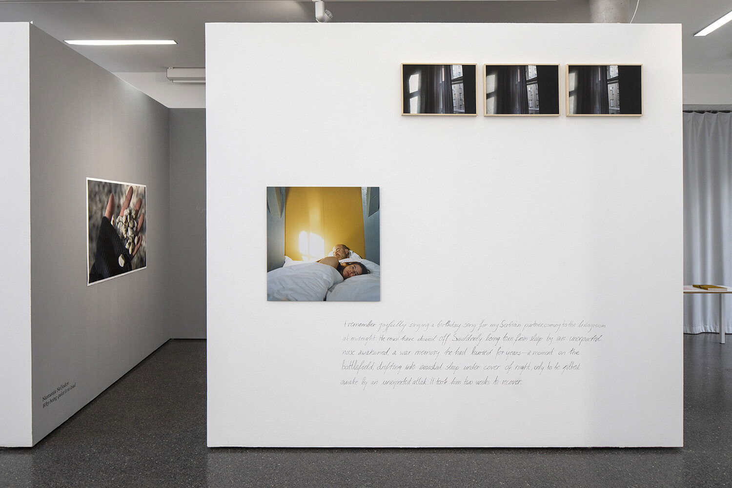 In »Motherland hears, Motherland knows« reist Dasha Karetnikova mit ihrem Vater in jene Städte und Orte Kasachstans, Georgiens und Russlands, wo er nach seiner Geburt in einem russischen Gulag gelebt und gearbeitet hat. Fungi Phuong Tran Minh setzt sich in »Mein ferner Osten« mit ihrer Kindheit als Tochter vietnamesischer Vertragsarbeiter:innen in der ehemaligen DDR auseinander und kombiniert Fotografien mit Texten über ihre Erfahrungen mit Ausgrenzung und Rassismus. Auf der Suche nach Wahrheit und Gerechtigkeit rekonstruiert Eugenia Maximova in »Silent River« die Umstände des Mordes an ihrer Schwägerin, einer regierungskritischen bulgarischen Journalistin. In der Videoarbeit »Why being quiet is so loud« zeigt Nastassja Nefjodov mit Blick auf ihren von den Erlebnissen im Kroatien-Krieg belasteten Partner, welche Auswirkungen Traumata auf persönliche Beziehungen haben.