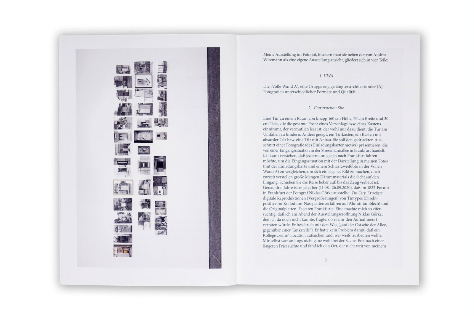 In F-Phil-Joe, Gerald Domenig reflects on the making of his exhibition at FOTOHOF, which he showed together with Andrea Witzmann in the summer of 2023. »Domenig now presents half of their story in this booklet, as well as three or four photographs that he missed in the exhibition. »F-Phil-Joe« is neither a catalog nor an artist’s book, it is a piece of the puzzle. For all those who didn’t see the exhibition, GD has included the terrible photograph of Gstättentor on page 31, which was the only color photo (fine art print) in the so-called Full Wall A (Architecture) at the beginning of the top row in the exhibition and was probably somewhat lost in it, at least not really shining. In the booklet it now shines as if it were the Festspielhaus on a Sunday. Page 71 shows a photograph taken in 1994 in a former mine in Heft bei Hüttenberg in Carinthia. If you can, please go there occasionally and take some comparison photos. At the end (pp. 78/79) we find ourselves back in Salzburg, on the edge of the square where »Jedermann« is being performed, and suddenly it becomes clear that from the first to the last page everything is just theater.« (Gerald Domenig)